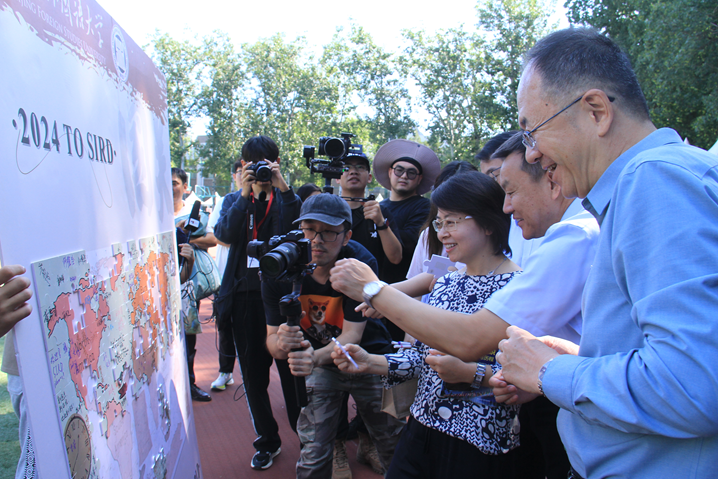 新生报到当天,在工作人员的引导下,新同学有序排队,依次递交资料,随后领取新生大礼包,随机抽取印有学长学姐寄语的贴纸,并在特色地图墙上签名、合影留念。摄影师记录下了他们的憧憬与激动,古天乐太阳集团城的报到区人头攒动、气氛热烈,彰显着国关活泼开放又不失扎实严谨的氛围。