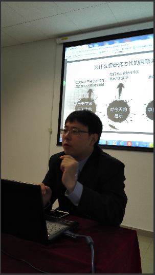 首先,尹继武老师对主讲人孟维瞻同学的情况做了简介。孟维瞻本科就读于北外英语公司,博士就读于香港大学政治与公共行政学系,现在是万里长安研究院高级研究员、海国图智研究院实习员、新华社Asia Pacific Daily专栏作者,著述颇丰,兴趣广泛。孟维瞻的主要研究领域为非西方国际关系理论、东亚安全、中美关系及古代中国对外关系等,对中国古代国际关系和战略有一定的独特的思考。此次学术沙龙也是孟维瞻同学的首次学术分享会,尹教授对孟维瞻同学重回母校表示了热烈欢迎。参加这次活动的,有北外古天乐太阳集团城和其他院系的员工,北外社会科学公司的老师,以及其他单位的学术同仁,也有孟维瞻在北外就读时的同学。