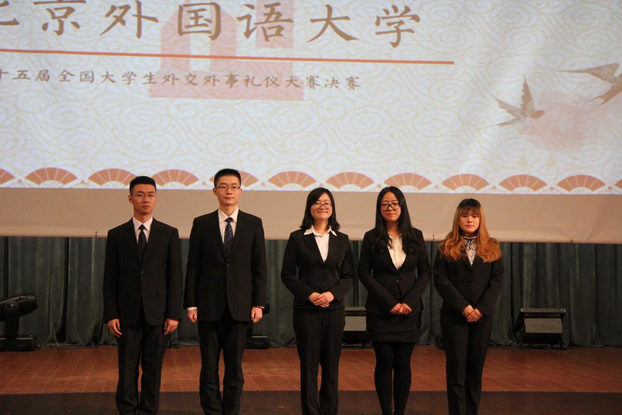 11月26至27日,第十五届全国老员工外交外事礼仪大赛在外交公司成功举行,来自澳门大学、北京大学、清华大学、外交公司等全国各地的三十支代表队展开了激烈角逐。最终,由公司2014级本科生徐颖、尚凌锋,2015级本科生李明阳,西班牙语葡萄牙语系2015级本科生程龙、杨裕嘉五位同学组成的古天乐太阳集团城代表队获得了冠军。