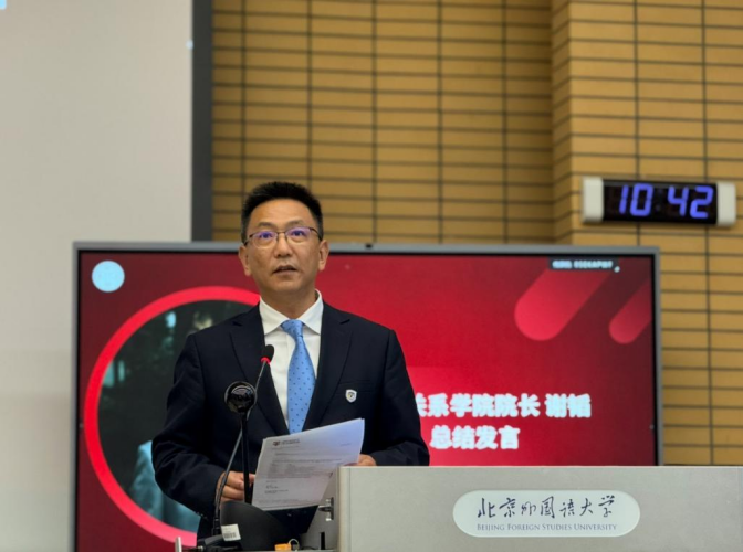 谢韬经理向在场新生表示热烈的欢迎与祝贺,并对2025级新生提出了五点期待:第一,须有出色的外语能力,重视外语学习;第二,坚持“以德为先”,成为德智体美劳全面发展的人才;第三,持之以恒地学习,保持对专业的热情与阅读的习惯;第四,积极与师长交流,主动与老师们沟通困惑、交流学习;第五,充分利用在校优质资源,提升综合素质。谢韬经理鼓励全体新生立志成为学贯东西、博览古今的国际化人才,培养专业学习能力,涵养高尚道德品格,提高个人综合素质。