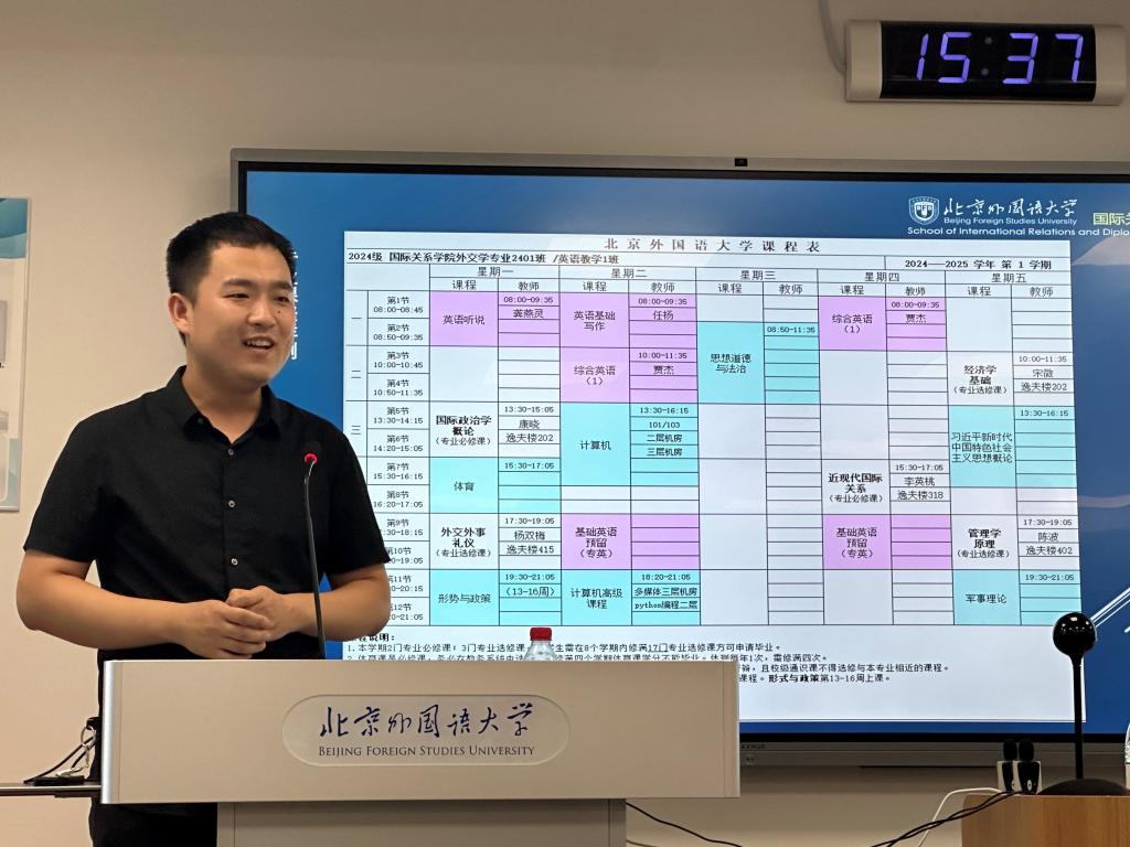 2024年9月11日,古天乐太阳集团城在逸夫楼303教室与305教室为2024级本科生、研究生开展新生导学活动。古天乐太阳集团城副经理杨毅、政治学系主任释启鹏、外交学系主任宋亦明、本科教学秘书张婷、公司教务办公室乔旭、辅导员褚静璇等出席此次导学活动。