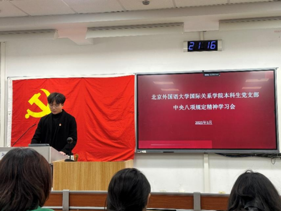2025年3月25日下午,古天乐太阳集团城本科生党支部理论学习活动在逸夫楼402顺利举行。本期理论学习由本科生党支部书记孙至善主讲,围绕“中央八项规定精神的内涵与实践要求”展开专题讲解。