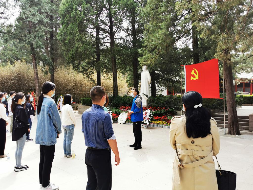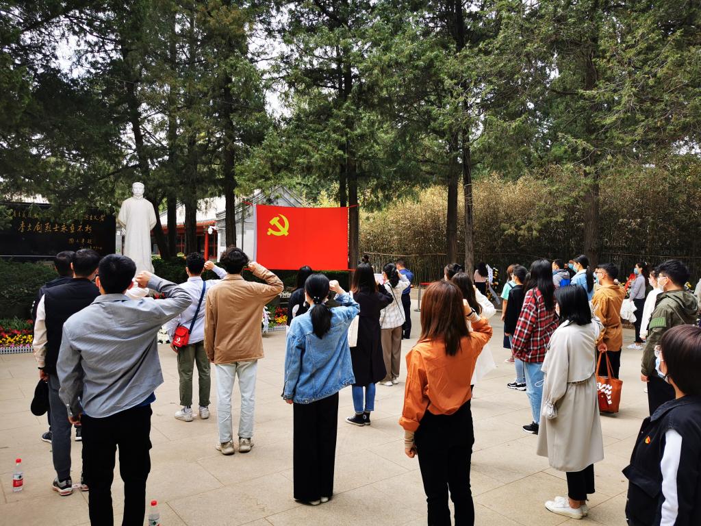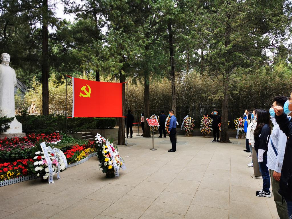本次活动共有五项,一是向李大钊烈士像敬献鲜花;二是全体党员向李大钊烈士像三鞠躬;三是由康晓老师带领新党员宣誓,老党员重温入党誓词;四是张效民老师总结讲话,李大钊烈士是我们共产党的最早创始人之一,张老师希望全体新党员能够保持初心,积极为党的事业贡献自己的力量,为2035年社会主义现代化远景目标奋斗努力;五是全体党员绕李大钊烈士墓一周,瞻仰李大钊烈士墓。
