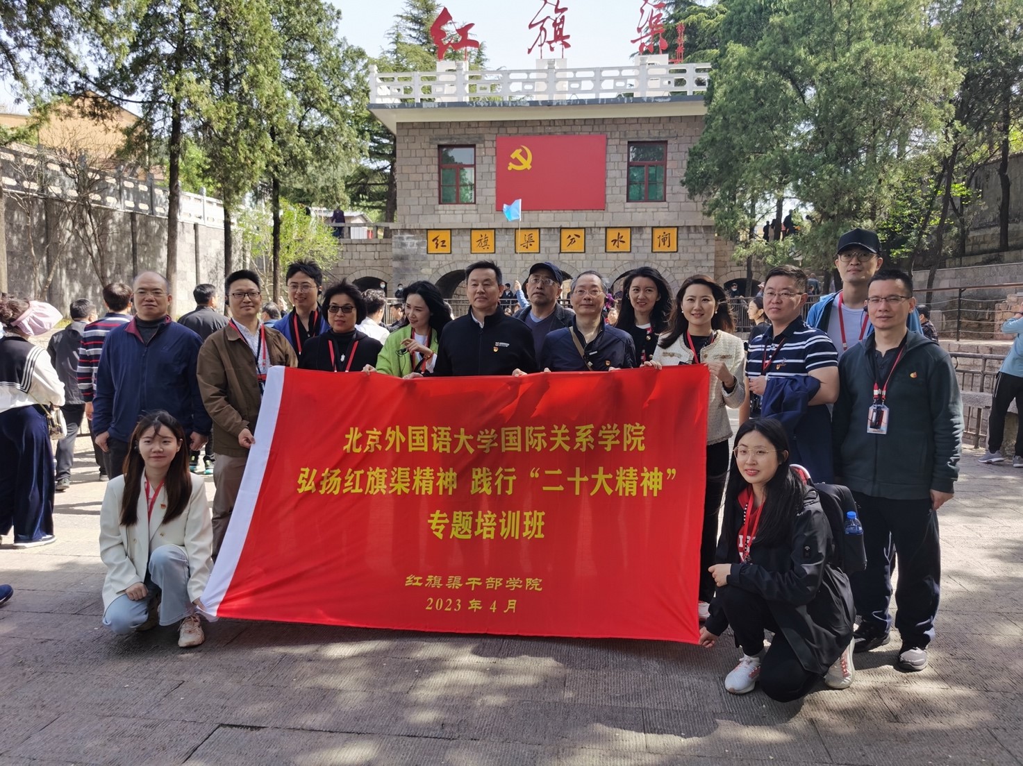 最后,大家沿着红旗渠追寻“红色足迹”。在红旗渠引水灌溉工程现场,巍巍太行山上一面鲜红的党旗格外醒目,李先念题写的“山碑”和郭沫若题写的“青年洞”气势磅礴,党员们更加深刻地感受到了红旗渠精神所蕴含的自力更生、艰苦创业、团结协作、无私奉献的精神内涵。通过这次亲身体验,党员们对红旗渠精神有了更为直观和深入的理解,表示要将红旗渠精神与党的二十大精神结合起来,以实际行动践行红旗渠精神。