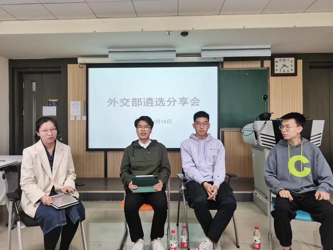 此次分享会首先就遴选前需要了解的问题进行了探讨。三位嘉宾分享了加入外交部的个人意愿以及结合自身的学习情况从语言能力、专业学习和实践等方面分享为遴选考试所做的准备