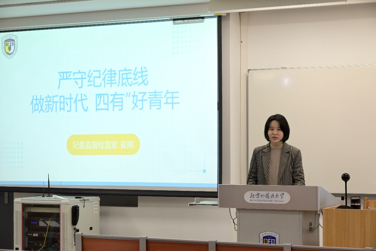彭澍在总结中,强调同学们要自觉加强对党规党纪的学习,既要守好底线,也要发挥好先锋模范作用,强化党员责任感,在学习、工作、生活中争做“四有”青年。
