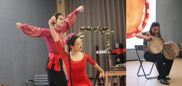 随后,古丽米娜教授与民大的同学们现场表演了塔吉克族、哈萨克族、乌孜别克族、维吾尔族的舞蹈与手鼓艺术,为在场观众带来了一场精彩绝伦的视听盛宴。